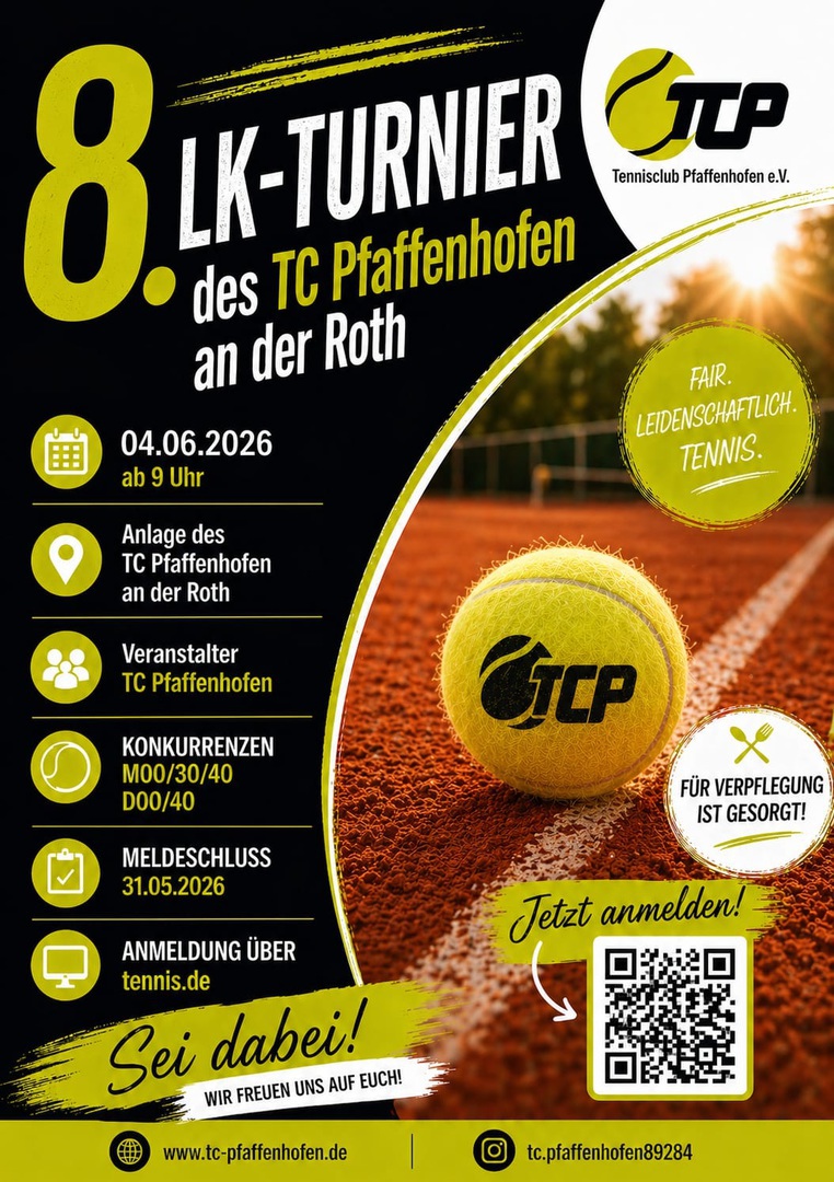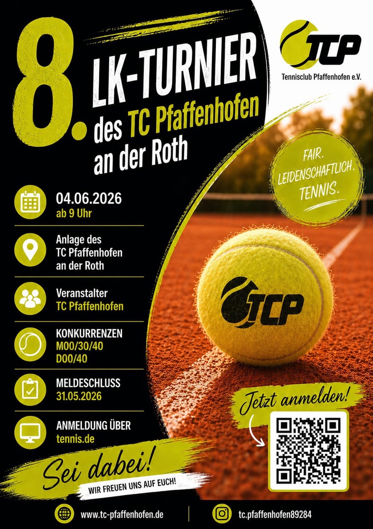 24 Tennis-Begeisterte kämpften auf unserer Anlage bei bestem Wetter um die begehrten LK-Punkte. Besonderes Lob seitens der Athleten gab es für unsere entspannte Atmosphäre, die relaxte Turnierleitung und das kulinarische Angebot.